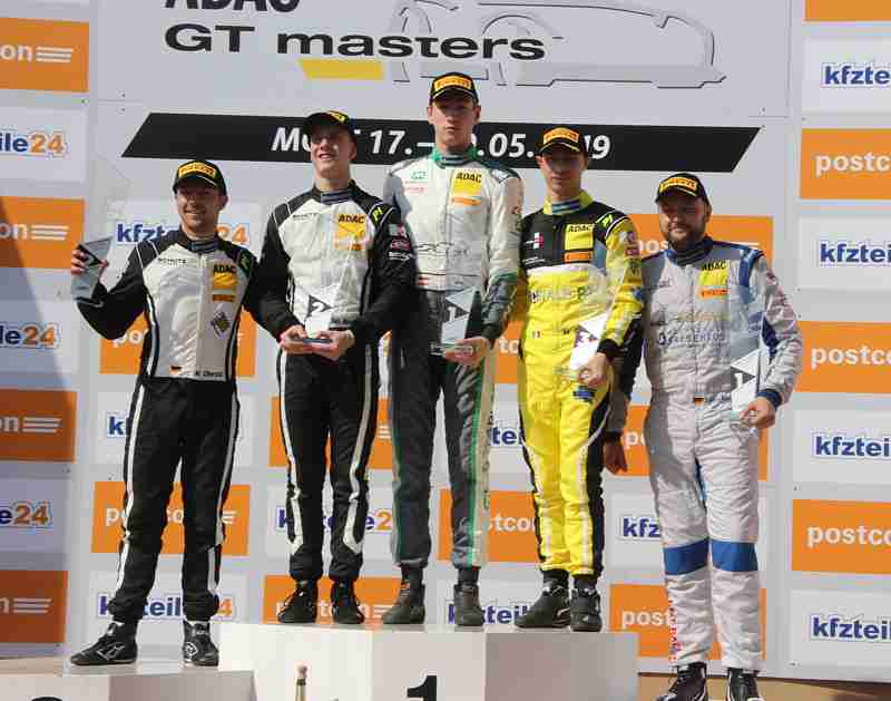 Für Serienneuling Fabian Vettel war es nach den ersten Punkten am Samstag nun seine erste Top-Ten-Platzierung, als Zweiter in der Pirelli-Junior-Wertung durfte er erstmals auf das Podium. Luca Ludwig/Sebastian Asch belohnten sich für eine starke Aufholjagd von Startplatz 22 im Ferrari 488 GT3 mit Platz acht. Dahinter kamen zwei weitere Audi ins Ziel: Jeffrey Schmid/Christopher Haase wurden Neunte vor Ricardo Feller/Dries Vanthoor. Gleich 15 Plätze machten Dennis Marschall/Carrie Schreiner, die einzige Fahrerin im Feld, gut. Als 15. punktete die 20-Jährige, die ihre Debütsaison bestreitet, erstmals in der "Liga der Supersportwagen".