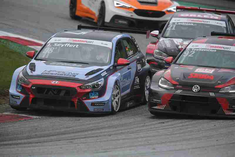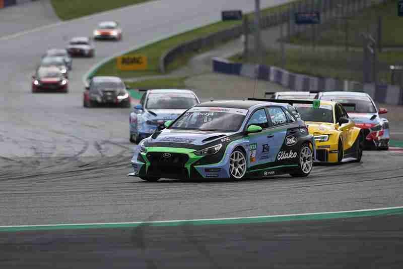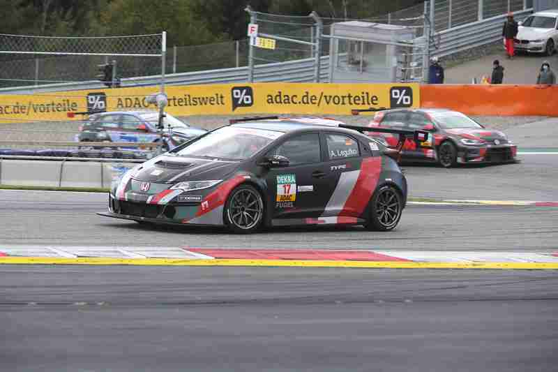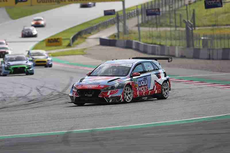 Als letzte Serie an diesem Samstag nahm die ADAC TCR Germany ihren neunten Lauf unter die Räder. Als die Piloten in der Startaufstellung standen wurde der Himmel immer dunkler. Nach den zwei Einführungsrunden funktionierte der Start ohne Probleme. Mitchell Cheah konnte seine Pole-Position nicht behaupten, denn Antti Buri hatte die Führung übernommen, gefolgt von Harald Proczyk. Die beiden Fugel-Brüder die von hinten gestartet waren, kamen mit der Lichthupe von hinten angeflogen. Patrick Simon lag auf Rang fünf. Zunächst ging es wie an der Perlenschnur aufgezogen hintereinander her. Der Pole-Setter befand sich auf Rang drei. An der Spitze musste der Finne bereits absolute Kampflinie fahren, denn der Österreicher setzte ihn arg unter Druck.
