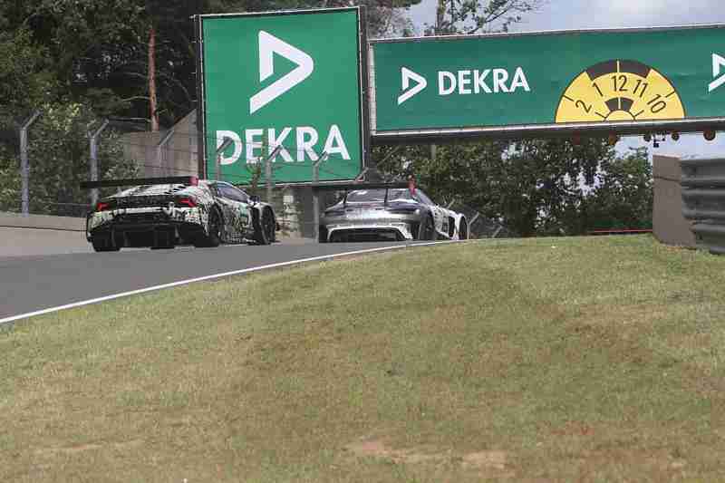 Alex Albon, Nico Müller und Sheldon van der Linde die das Feld anführten waren die letzten die noch nicht in der Box gewesen waren. Auch Philip Ellis musste noch herein kommen. Beim ersten Mal hatte er seine Strafe abgesessen. Dahinter befanden sich Marco Wittmann, Lucas Auer und Maximilian Götz. Lucas Auer erhielt eine 5-Sekunden-Zeitstrafe von der Rennleitung weil seine Mannschaft zu früh in der Boxengasse herum stand. Zwischenzeitlich hatte Esteban Muth sich Daniel Juncadella zu Recht gelegt und war am Mercedes-Piloten vorbeigegangen. Philip Ellis führte eine Truppe von sechs Fahrzeugen an. Mike Rockenfeller musste absolute Kampflinie fahren, denn Esteban Muth drückte und drückte von hinten. Im nach hinein fand er dann eine Lücke und er quetschte sich mit seinem Lamborghini vorbei an Mike Rockenfeller. Dabei kam er sogar etwas in den Dreck. Er hatte sich damit auf Rang zehn gefahren.