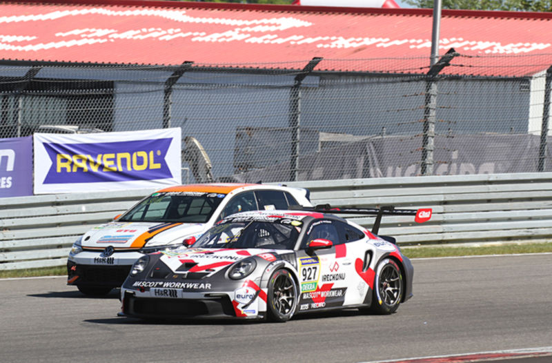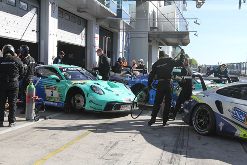 Von der Pole-Position aus gestartet dominerte Manthey-Startfahrer Güven die ersten vier Runden. Im fünften Umlauf musste er sich erstmal Ricardo Feller im Porsche 911 GT3 R von Scherer Sport PHX geschlagen geben, um nur wenige Kilometer später erneut nach vorne zu stürmen. Der Scherer-Elfer war über weite Strecken in der Führungsgruppe dabei, musste jedoch eine Runde vor Schluss zum Nachtanken die Box ansteuern und fiel auf Gesamtrang sechs zurück. Das Schwesterauto, der Audi R8 LMS GT3 EVO 2 von Christopher Haase und Luca Ludwig, war ebenfalls in den Kampf um die Podestplätze involviert, fiel auf Platz zwei liegend kurz vor dem letzten Stint aber zurück.