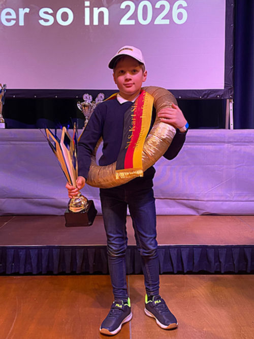 Auch der Vater, Michael Bohrer, wurde mit Teamkollege Gerritt Holthaus geehrt und erhielten Pokale für Platz sechs in der Jahreswertung.