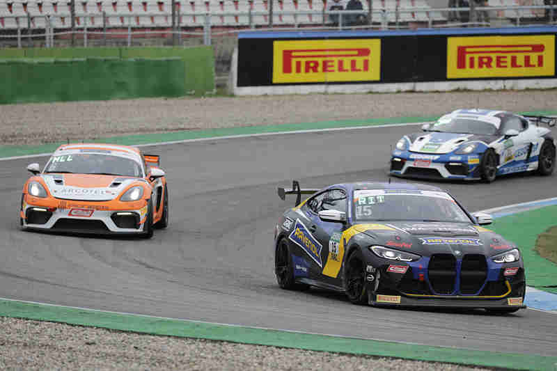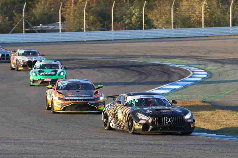 Als letzte Serie achten sich am späten Samstagnachmittag die Fahrerinnen und Fahrer der ADAC GT4 Germany bereit, ihren vorletzten Lauf in diesem Jahr hinter sich zu bringen. Die Pole-Setter konnten nach der Einführungsrunde den fliegenden Start ohne Probleme absolvieren und führten das Feld in die erste Kurve. Aus dem hinteren Feld drehten sich bereits Marat Khayrov/Gabriele Piana hinaus und mussten dem Feld hinterher eilen. Pavel Lefterov/Stefan Bostandjiev lagen unter Beobachtung wegen eines Frühstart. Nach der ersten Runde führten weiterhin die amtierenden Meister vor David Jahn/Nicolaj Möller Madsen/Ivan Ekelchik und Pavel Lefterov/Stefan Bostandjiev. Alexander Hartvig/Nathan Schaap hatten in der Anfangsphase einen Treffer erhalten und waren ans Ende des Feldes zurück gefallen.