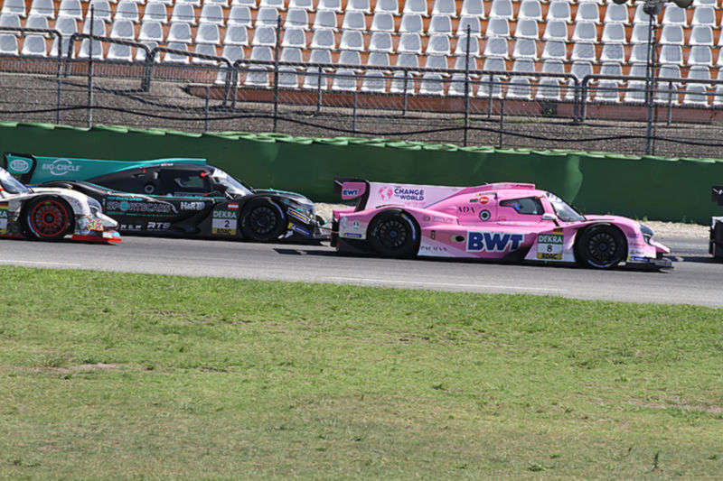 Zwischenzeitlich waren die BWT Mücke Piloten von Danny Soufi / Torsten Kratz niedergerungen worden. Sie lagen nun auf Rang vier. Jacob Erlbacher auf Platz fünf wird dieses Rennen alleine bestreiten, denn sein Teamkollege Maxim Dirckx ging es nach dem Einschlag im zweiten Rennen nicht so gut. Nach fünf Runden führten Markus Pommer / Valentino Catalano nur mit einem knappen Vorsprung von 0.985 Sekunden. Danach riss das Feld erst einmal ab. Die übrigen Fahrzeuge fuhren alle mit einem gewissen Respektabstand hintereinander her. Nach acht Runden hatten die Führenden sich noch nicht von ihrem Verfolger befreien können. Einen harten Kampf lieferten sich jetzt Danny Soufi / Torsten Kratz und Julien Apothèloz / Riccardo Leone Cirelli um Platz drei.