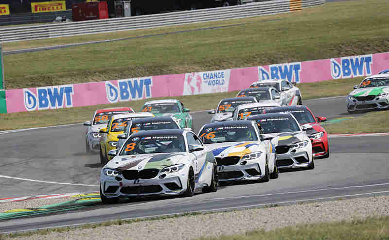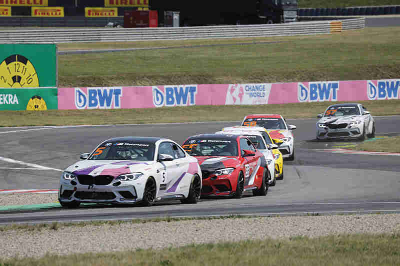 Der Start zum ersten Lauf am Samstagnachmittag funktionierte ohne Probleme. Denny Berndt konnte seine Position nach der Einführungsrunde behaupten und führte das Feld in die erste Kurve. Er konnte sich auch direkt ein wenig vom Feld lösen. Wenig später war Alex Walker auf Abwegen unterwegs. Nach der ersten Runde führte Denny Berndt mit einem Vorsprung von 1,044 Sekunden vor Julius Dinesen und Leyton Fourie. Als beste Dame lag Claudia Henning auf Rang dreizehn. Max Rosam führte eine Meute von sieben Fahrzeugen an. Senna van Soelen und Bartholomew Horsten tauschten etwas den Lack aus. Hier ging es um den sechsten Platz. Von alledem bekam der Pole-Setter nichts mit, denn er baute Runde um Runde seinen Vorsprung immer weiter aus.