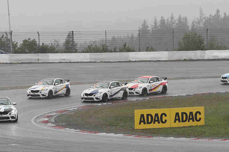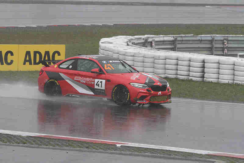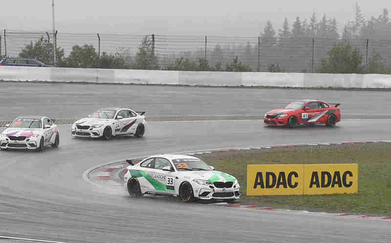 Überall sah man nun leichte Rutscher oder Quersteher. Senna van Soelen hatte bei dem Regen zu viel riskiert und war nach einem Dreher auf Rang neun zurückgefallen. Max Rosam machte in der fünften Runde Druck auf Denny Berndt. Er musste aber aufpassen, denn ihm lag Jan Matyas im Nacken. Hier ging es um die vierte Position. Carmen Kraav konnte nach vorne fahren und war auf Rang elf nun die beste Dame im Feld. Einen harten Kampf lieferten sich Adrian Rziczny und Robbie McAfee. Wenig später hatte Colin Bönighausen sein Fahrzeug nicht mehr auf der Strecke halten können und schoss weit ins Aus. Auch Alex Walker war weit ins Aus geraten. Ende Start und Ziel hatte Denny Berndt den BMW auch nicht mehr unter Kontrolle und schoss erst einmal gerade aus. Zu dieser Zeit schüttete es aus Eimern.