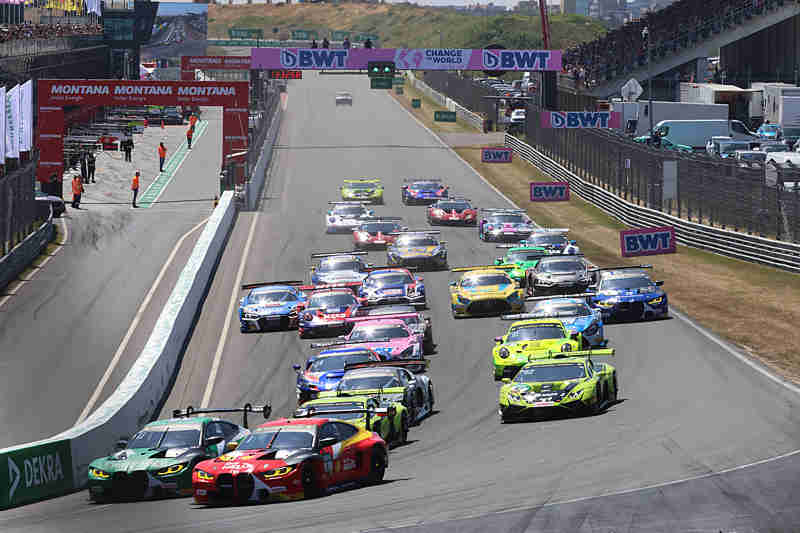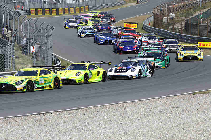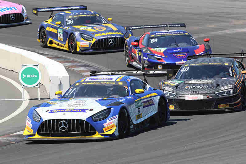 Ricardo Feller konnte den fliegenden Start am Sonntagmittag für sich verbuchen und bog als Erster in die erste Kurve. In der Tarzanbocht kamen sie alle ordentlich durch. Lucas Auer hatte sich bereits in der Startphase seine Motorhaube schädigt. Diese stand ein wenig ab. Überall wurde hier und da ganz leicht der Lack ausgetauscht. Nach der ersten Runde führte weiterhin Ricardo Feller vor Maro Engel und Thomas Preining. Unterdessen war Lucas Auer in die Box gekommen. Tim Heinemann hatte bereits Plätze gutgemacht. Er wurde aber in der dritten Runde von Sheldon van der Linde niedergerungen und nahm danach Rang 15 ein. Lucas Auer wurde nicht mehr hinaus geschickt. Der Schweizer an der Spitze konnte sich bereits mit 2,065 Sekunden vom übrigen Feld absetzen.