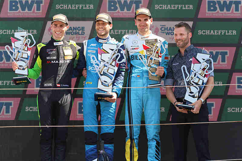 Luca Stolz (Mercedes-AMG Team HRT): „Nach einem sehr bescheidenen Wochenende in Oschersleben ist es schön, so zurückzukommen. Den Unterschied haben eindeutig die Jungs in der Box gemacht. Der Pitstop war super, genauso wie die Strategie. Marco Wittmann hat zum Schluss nochmal Druck gemacht, aber ich wusste, dass ich wegen unserer guten Traktion in Sektor zwei und drei besser bin und war deshalb halbwegs relaxt. Mir war klar, wenn ich keinen Fehler mache, klappt es und das war dann auch so.”