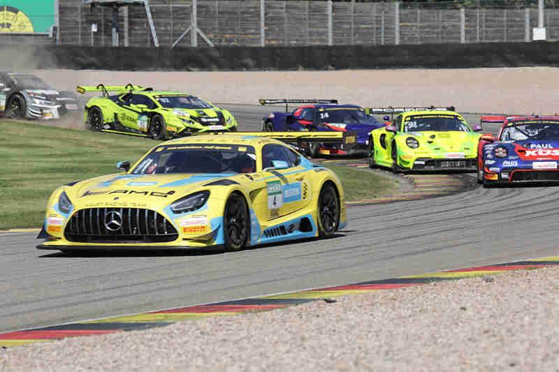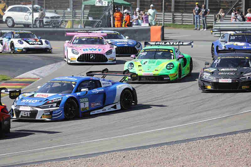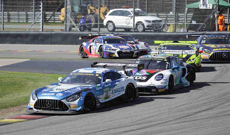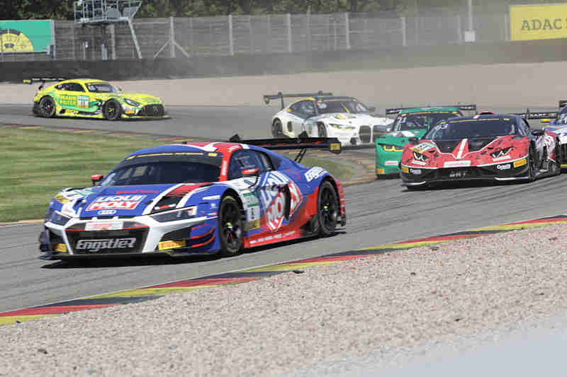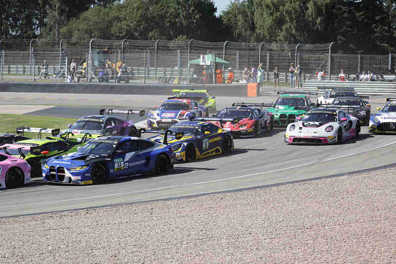 Kelvin van der Linde der eigentlich von Rang drei aus ins Rennen gehen sollte, wurde um drei Ränge wegen mehrmaliger Verwarnungen zurück versetzt. Ricardo Feller wurde auch um fünf Startplätze nach hinten gesetzt. Startplatz drei nahm nun Thomas Preining ein, gefolgt von Mirko Bortolotti und Thierry Vermeulen. Luca Stolz konnte nach der Einführungsrunde den fliegenden Start zum elften Saisonrennen am Samstagmittag bei herrlichstem Spätsommerwetter für sich verbuchen. Der türkische Pilot wurde direkt von Thomas Preining attackiert. Er musste aber noch zurückstecken. An der Spitze hatte sich dadurch Luca Stolz mit mehreren Wagenlängen vom Feld abgesetzt. Im gesamten Feld waren harte aber faire Zweikämpfe im Gange.