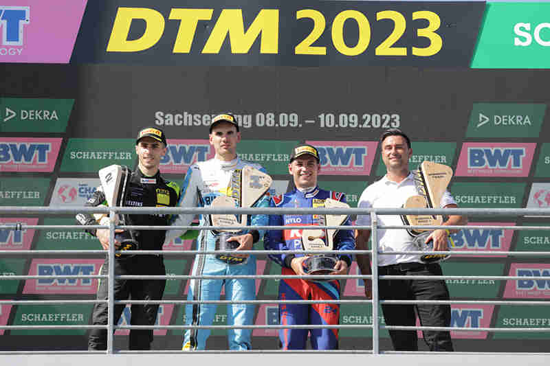 Luca Stolz (Mercedes-AMG Team HRT): „Erst die Pole-Position und dann der Start-Ziel-Erfolg, das war ein perfekter Tag. Ich freue mich mega über meinen zweiten DTM-Sieg, denn der Sachsenring ist für mich eines der Highlights im DTM-Kalender. Durch den Vorsprung sah es von außen vielleicht einfach aus, trotzdem musste ich immer voll fokussiert bleiben und durfte mir keinen Fehler erlauben.“