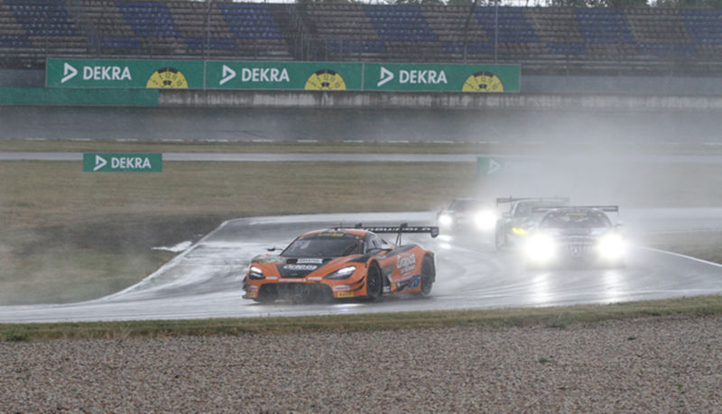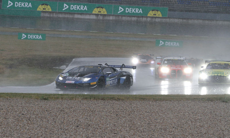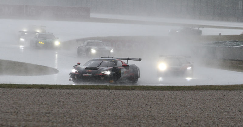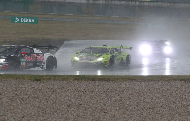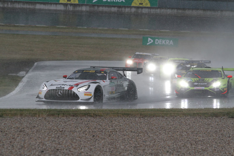 Christian Engelhart hatte eine Penaltylap erhalten wegen Behinderung von Maro Engel. Die gleiche Strafe erhielt Sheldon van der Linde. Er hatte Lucas Auer behindert. Ron Dobmeier führte unterdessen das Feld wieder zusammen. Es wurde dann um 17.16 Uhr das Rennen mit der roten Flagge unterbrochen, da zu viel Wasser auf der Strecke stand. Die Piloten stellten sich nun auf der Start und Zielgeraden auf. Der Re-Start erfolgte dann hinter dem Safety Car. Christian Engelhart und Marco Wittmann standen unter Beobachtung wegen zu spät erfolgten Ablassens des Fahrzeugs beim 3-Minuten-Schild. Um 17.29 Uhr setzte sich der Tross dann in Bewegung. Erneut wurde das Rennen um 17.34 Uhr wieder mit der roten Flagge unterbrochen, da wiederum zu viel Wasser auf der Strecke war. Die Piloten nahmen wieder ihre Positionen auf der Start und Zielgeraden ein.