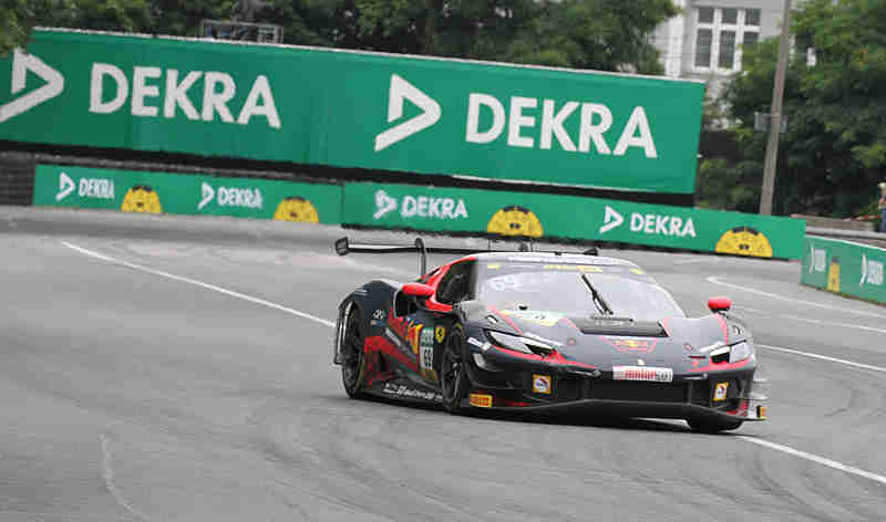 Das zweite freie Training stand dann am Freitagnachmittag bei sehr warmen Wetter auf dem Programm. Die Zeiten gegenüber morgens wurden schneller. Diesmal hatte Maro Engel (Mercedes-AMG Team WINWARD) nach 36 Runden mit einer Zeit von 49,060 Sekunden das Sagen, gefolgt von Rene Rast und Nicki Thiim. Kelvin van der Linde musste sich mit Rang zehn zufrieden geben. Mirko Bortolotti hatte sich verbessern können und hatte sich auf Platz vier gefahren. Ricardo Feller war bis auf Rang 16 zurückgefallen.