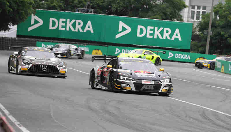 Ausgang der Dutzendteichkehre lag der Scheinwerfer von Marco Wittmann mitten auf der Strecke. Die Rennleitung schickte nun das Safety Car heraus. Damit wurde es in den letzten Minuten noch einmal spannend. Das Feld wurde jetzt wieder zusammen geführt. Der Re-Start erfolgte dann noch einmal für vier Minuten und vierzig Sekunden. Der Däne konnte seine Führungsposition behaupten vor Maro Engel und Mirko Bortolotti. Kelvin van der Linde war an Jack Aitken vorbeigegangen. In der Schlussphase lag Maro Engel mit 0,7 Sekunden immer noch in Schlagdistanz zum Führenden. Sehldon van der Linde lag unter Beobachtung wegen Spurwechsels in der Bremsphase. Wird nach dem Rennen von den Sportkommissaren bearbeitet. Nicki Thiim gewinnt seinen ersten DTM-Sieg nach 69 Runden vor Maro Engel und Mirko Bortolotti. Kelvin van der Linde und Ricardo Feller beenden das Rennen auf den Plätzen zehn und vierzehn. Rene Rast wird als Fünfter abgewunken.