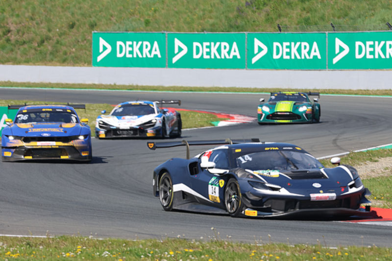 Das zweite freie Training am Freitagnachmittag war bei Temperaturen von 15 Grad Celsius schneller als die erste Session. Gleich zwölf Fahrer unterboten die 1:23,000-Minuten-Marke – mehr als doppelt so viele wie am Vormittag. Es kam zu einem spannenden Schlagabtausch mit späten Führungswechseln. Maro Engel (Mercedes-AMG Team WNWARD) ließ sich lange Zeit, brachte den neuen Slickreifen von Pirelli in das optimale Arbeitsfenster und verdrängte sieben Minuten vor Ende mit einer Zeit von 1:22,321 Minuten und 17 gefahrenen Runden den bis dahin führenden Maximilian Paul (Paul Motorsport) von der Spitzenposition. Jordan Pepper (TGI Team Lamborghini by GRT) platzierte sich erst knapp 90 Sekunden vor Schluss auf Platz zwei. Als bester Porsche-Pilot auf Platz fünf fuhr Thomas Preining, der zudem die Bestzeit in der Vormittags-Session markierte. Ayhacan Güven konnte sich zwar zeitmäßig gegenüber vormittags verbessern, kam aber nicht über Rang fünf hinaus. Mirko Bortolotti musste sich diesmal mit Platz 20 begnügen. Hingegen konnten sich Rene Rast und Marco Wittmann verbessern. Sie nahmen die Ränge 18 und dreizehn ein