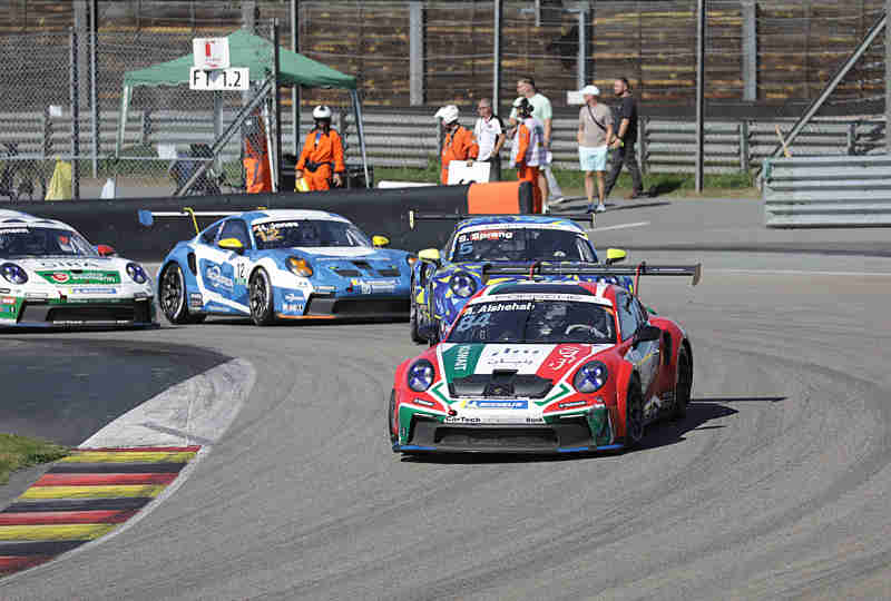 An der Spitze hatte sich der Pole-Setter und Bastian Buus mit fast zwei Sekunden vom übrigen Feld abgesetzt. Der Druck des Dänen wurde jetzt immer stärker. Larry ten Voorde auf Rang drei hatte eine riesige Armada von zwölf Fahrzeugen hinter sich. Nach elf Runden konnte sich der Niederländer aber mit 1,011 Sekunden von seinen Verfolgern befreien. Leon Köhler versuchte nun Loek Hartog unter Druck zu setzen. Für einen kurzen Moment hatte sich nach zwölf Runden der Däne an die Spitze gefahren, doch der Gegenkonter von Morris Schuring kam und er holte sich seine Führungsposition wieder zurück. Dies konnte Larry ten Voorde nutzen und war nun an diesem Duo dran. Theo Oeverhaus hatte in den letzten neun Minuten sich auf Rang sieben gefahren, zuvor war er an Alexander Tauscher vorbeigegangen.