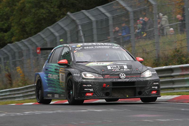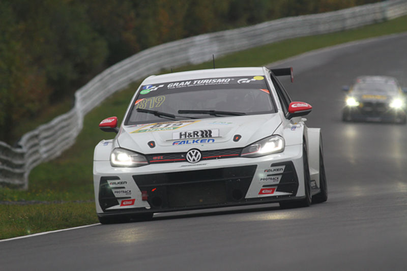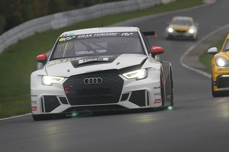 Weil das GPS-System infolge der Reparatur nicht ordnungsgemäß funktionierte, wurde Falken von der Rennleitung mit der sogenannten ‚Spiegelei-Flagge‘ an die Box beordert. Bei dem unplanmäßigen Stopp entschied sich das Team zu einem mutigen Reifenwechsel: Bachler setzte als erster Fahrer auf Slicks. Auch wenn die ersten Meter diffizil waren, fuhr er sich so einen Vorsprung heraus. Beim nächsten Stopp übernahm Picariello das Volant und hatte im Metzgesfeld ebenfalls Kontakt mit der Leitplanke. Die Beschädigungen beeinträchtigten die Rennspeed nicht und er setzte die Fahrt bei wechselnden Witterungsbedingungen fort.