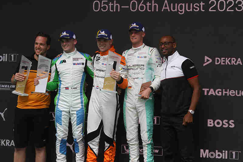 Leon Köhler (Huber Racing): „Für mich verlief die Saison bisher nicht so toll. Deswegen bin ich besonders glücklich und freue mich für das Team, dass ich endlich wieder einmal auf dem Podium stehe.“