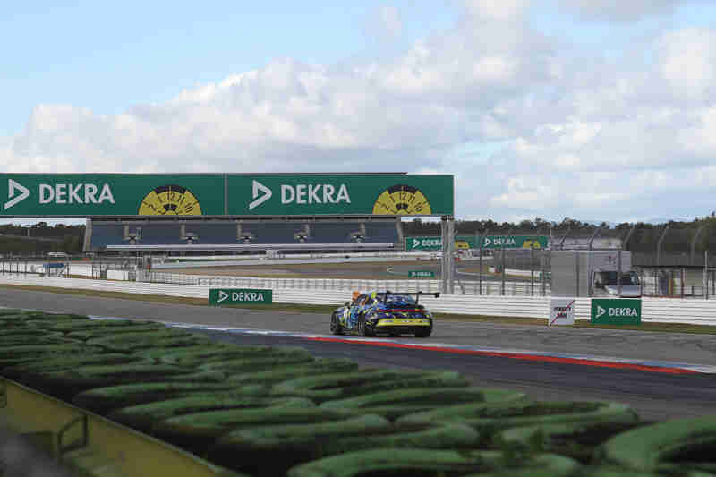 Einen harten Kampf lieferten sich Jane Stiak und Huub van Eijndhoven um Rang elf. Bei noch sieben Minuten zu fahrender Zeit waren Vincent Andronaco und Sebastian Freymuth in der Spitzkehre neben der Strecke gelandet. Letzterer hatte Probleme bekommen, denn er war mit stehenden Rädern unterwegs und nahm nun auch noch den Rookie mit ins Aus. Bei Sebastian Freymuth lief auch noch Flüssigkeit aus. Sofort musste das Safety Car zum Einsatz kommen um die Havaristen bergen zu können. Der Re-Start erfolgte nach 15 Runden und ging zu Gunsten des Niederländers aus. In der Schlussphase ging die Jagd auf die Positionen wieder von vorne los. Nachdem Alexander Tauscher sich verbremst hatte, konnten Harry King und Loek Hartog vorbeiziehen. Auf Platz zwölf war Ahmad Alshehab als bester ProAM-Fahrer unterwegs.