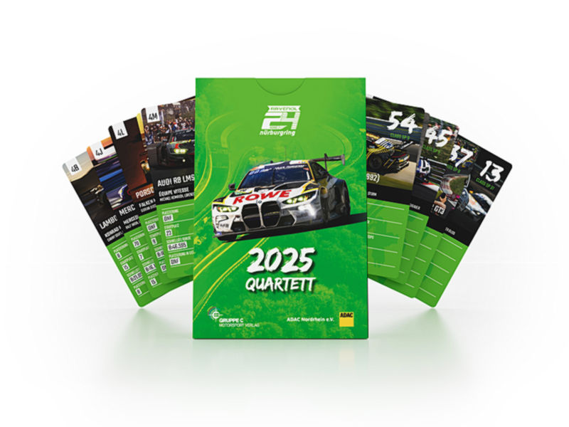 Als klassisches Quartett oder dem bekannten Trumpfspiel ist das historische Champions Quartett zum 24 Stunden Rennen am Nürburgring ein riesen Spielspaß für groß und klein. Die Spielkategorien sind auf das einzigartige Motorsportevent abgestimmt und bebildert jeden Sieger der letzte 52 Jahre. Ob die Viper aus 2001 den Müllerbräu Porsche aus 1978 schlägt? Finde es raus! Das nächste 24h Rennen und seine nervenzerreißenden Duelle auf dem Asphalt lassen noch eine ganze Weile auf sich warten - bis dahin könnt ihr Euch battlen.