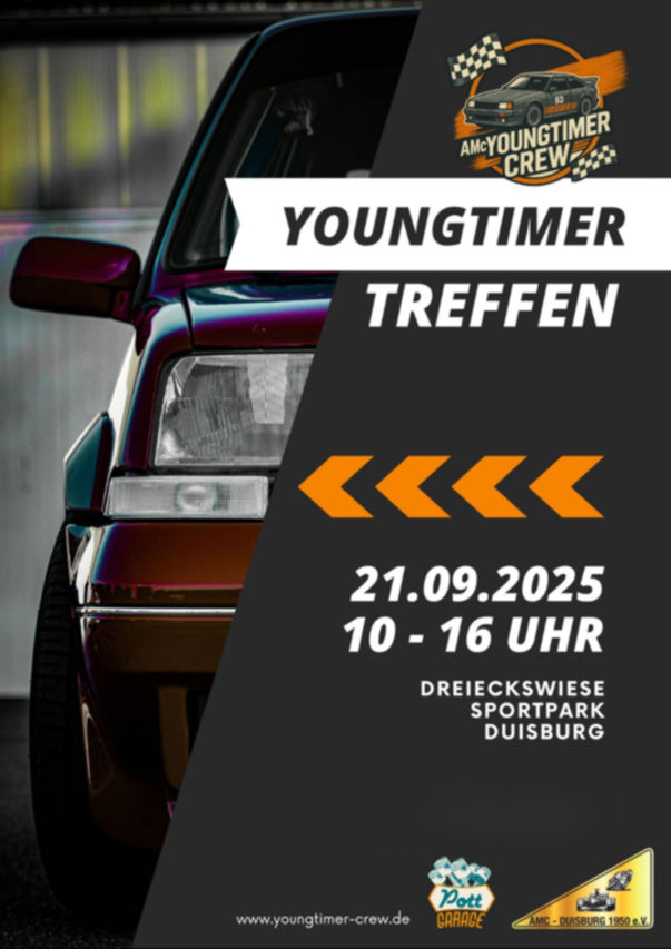 Am 21. September 2025 findet das erste Youngtimer Treffen auf der Dreieckswiese im Sportpark Duisburg statt. Die Youngtimer Crew ist eine Abteilung des AMC Duisburg 1950 e. V., die Ihr Oldtimertreffen aus Platzgründen im Landschaftspark Duisburg Nord im August durchführen.