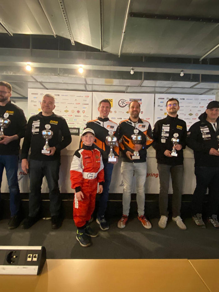 Mit Michael und Jonas Bohrer waren weitere Piloten des AMC Duisburg auf dem Siegerpodest. Michael Bohrer und Pascal Fritsche (FS Motorsport) fuhren auf einen VW Golf 8.5 GTI Clubsport auf Platz 1 in der Klasse VT2-F+4WD und belegten in der Gesamtwertung auf Rang 58 der 131 Starter. „Pascal fuhr den Start und bis zum Fahrerwechsel hat er sich auf Platz eins gefahren. Ich habe dann nichts mehr riskiert und nach vier Stunden auf P1 die Ziellinie überquert“ so der Pilot des AMC Duisburg nach dem Rennen.