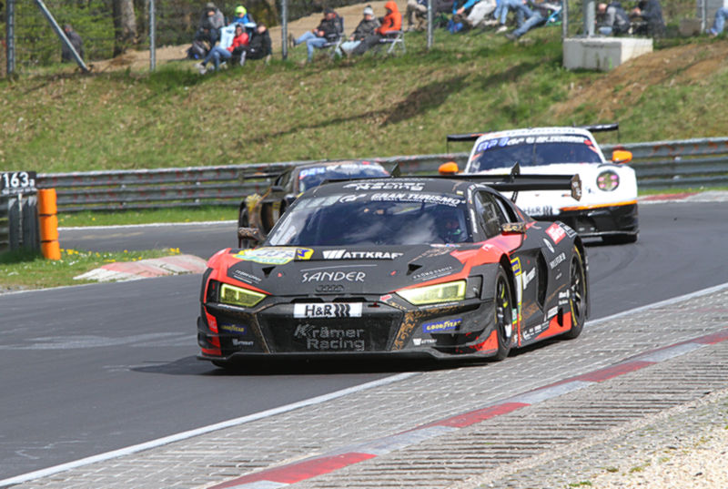 In der ersten Rennhälfte lebte an der Spitze des Feldes zudem der packende Zweikampf zwischen Christopher Haase im Scherer-Audi und Max Verstappen im Mercedes-AMG GT3 erneut auf, der wie ein direktes Abziehbild ihres Duells von NLS2 wirkte. Haase genoss den erneut sehr respektvollen Schlagabtausch, räumte jedoch ein, dass er sich diesmal aufgrund mangelnder Balance und Übersteuern bei den kalten Bedingungen deutlich schwerer tat. Auch wenn die Action laut Steve Buschmann, Teammanager von Verstappens Einsatzteam Winward, für ordentlich Adrenalin am Kommandostand sorgte, gab man Verstappen die klare Anweisung „no risk, take it easy“, um die Zielankunft nicht zu gefährden. Nach 90 Minuten steuerte Verstappen jedoch in Führung liegend unplanmäßig die Box an, wo ein Schaden am vorderen Splitter festgestellt wurde. „Wir haben das Auto aus Sicherheitsgründen reingeholt, damit nichts Schlimmeres passiert, und nutzen die restliche Zeit des heutigen Rennens als Testeinsatz“, so Buschmann. Lucas Auer hatte so die Möglichkeit, wertvolle Rennkilometer im dichten Verkehr zu sammeln.