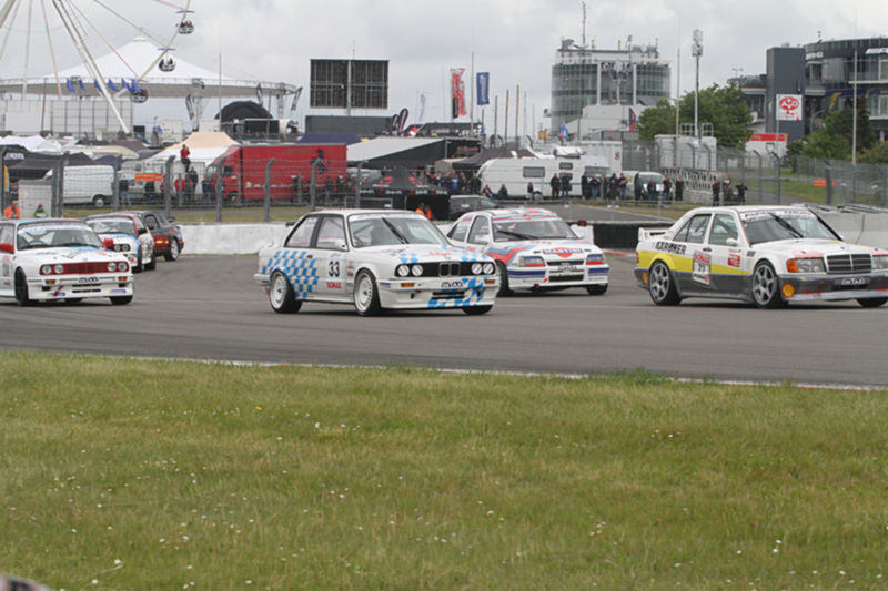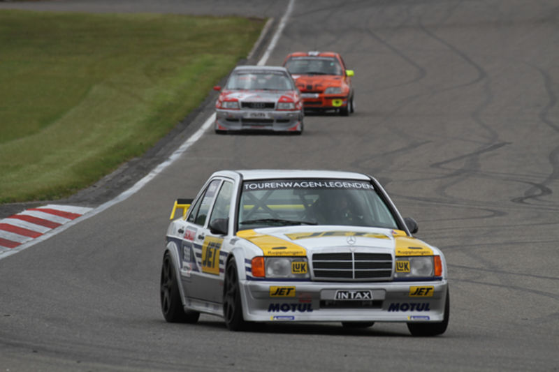 Drei Mercedes-Benz-Piloten prägten das 20-minütige Zeittraining und den ersten Renndurchgang der Tourenwagen Legenden am Donnerstag. Zunächst setzte der dreimalige DTM-Champion Klaus Ludwig in der C-Klasse des DTM-Jahrgangs 1994 auf regennasser Piste die Rundenbestzeit. Davon konnte Fahrzeugbesitzer Guido Momm aber nicht profitieren, nachdem er zunächst auf den letzten Platz in der 40 Fahrzeuge umfassenden Startaufstellung versetzt worden war und erst spät den Platz in der ersten Reihe zurückerhielt. Stefan Mücke nutzte die Gunst der Stunde und setzte sich mit dem 2006 von ihm selbst in der DTM gefahrenen Klasse-1-Mercedes als souveräner Sieger in Szene. Ralf Schall (Opel Astra V8 Coupé) und Porsche-Pilot Michael Barbach (911 GT3 Cup) komplettierten das bunt gemischte Podium. YouTube-Star Jean-Pierre Zimmer fiel nach starkem drittem Startplatz mit Getriebelagerschaden aus.