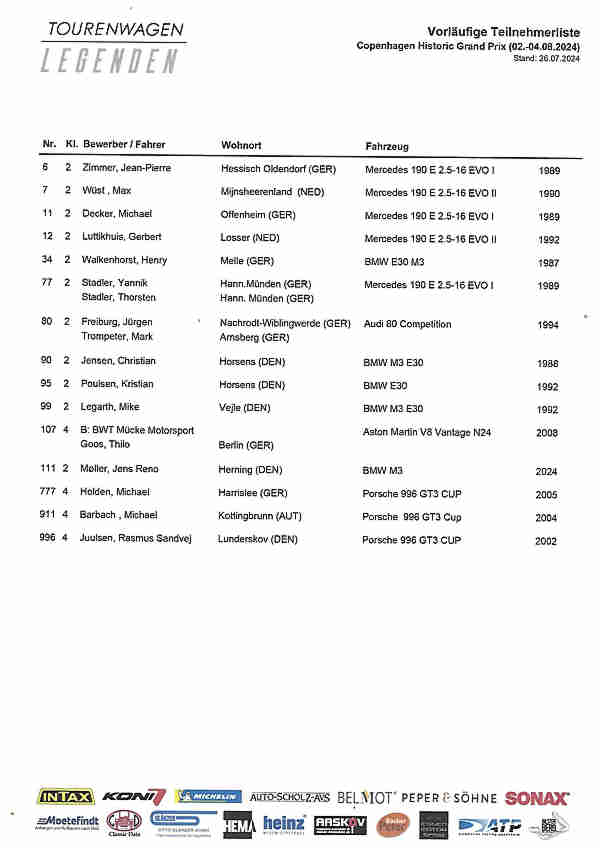 Starterliste Tourenwagen Legenden