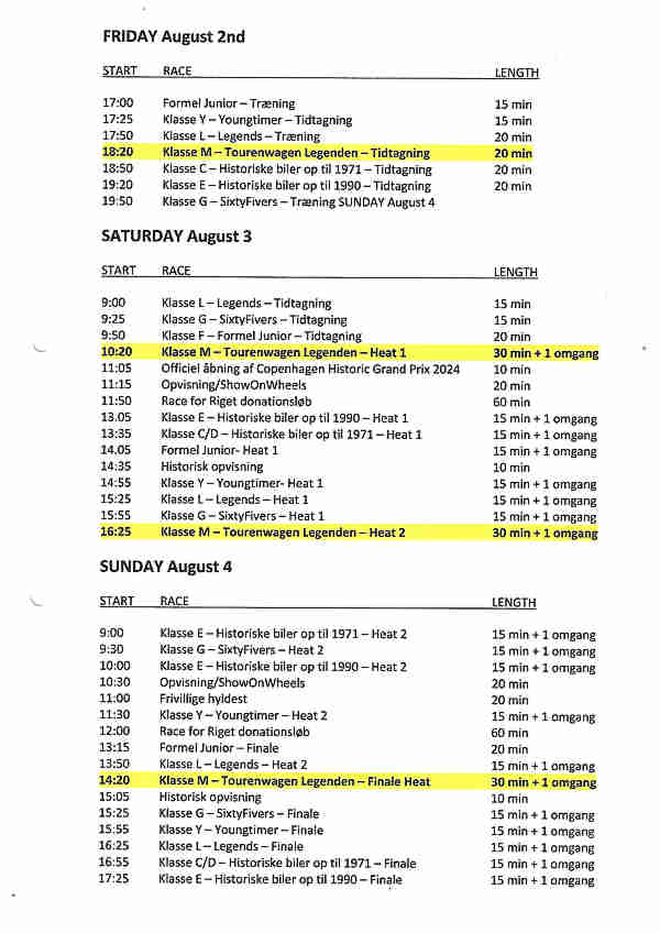 Zeitplan Copenhagen Historic Grand Prix
