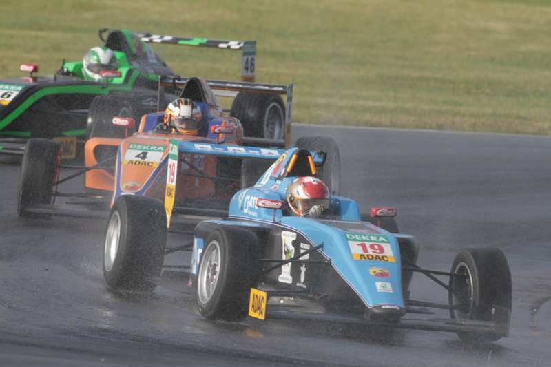 Einen harten Kampf lieferten sich Jannes Fittje und Felipe Drugovisch um Platz sechs. Fabio Scherer hatte Mick Schumacher gebügelt und Rang fünf eingenommen. Nach 15 Runden kam Sophia Flörsch in die Box. Der Doppelsieger musste sich dann auch noch Jannes Fittje geschlagen geben. Mauricio Baiz erhielt eine Verwarnung von der Rennleitung. Mike David Ortmann hatte sich mit 2,207 Sekunden auf und davon gemacht. Da die Ideallinie immer mehr abtrocknete, hatten die alles richtig gemacht, die auf Slicks unterwegs waren. Fabio Scherer hatte sich Runde um Runde nach vorne gearbeitet und war nach 17 Runden der Führende Mann im Feld. Auf Platz zwei lag Jannes Fittje, gefolgt von Mike David Ortmann. Mick Schumacher war bis auf Platz sechs zurückgefallen. Nach 18 Runden holte sich Fabio Scherer seinen ersten Sieg in der Formel 4. Er war von Rang vierzehn aus ins Rennen gegangen. Auf Platz zwei und drei wurden Jannes Fittje und Mike David Ortmann abgewunken. Als Sechster sah Mick Schumacher das Ziel. Joey Mawson überquerte auf Platz 23 die Ziellinie.