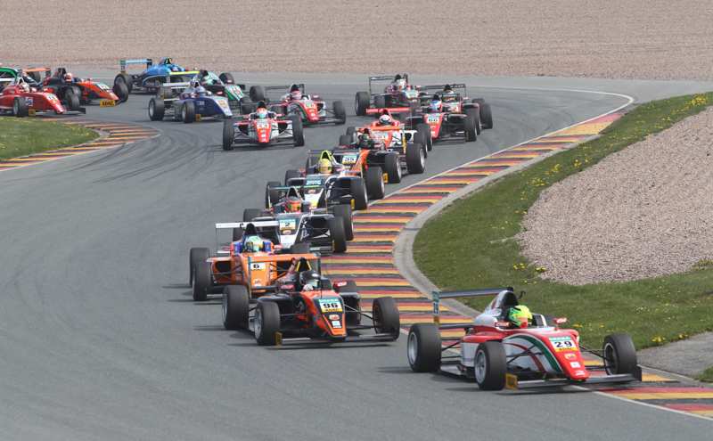 Ein harter Kampf um die Führung dauerte rundenlang an. Es kam auch zwischen Mick Schumacher und Joey Mawson zu einer ganz leichten Berührung. Nach zwei Runden musste das Safety Car herauskommen, weil Oliver Söderström im Kiesbett gelandet war und erst geborgen werden musste. Sophia Flörsch auf Rang zwölf war die schnellste Dame im Feld. Zu dieser Zeit lagen Mick Schumacher und Joey Mawson unter Beobachtung der Rennleitung. Nach dem Re-Start konnte Job van Uitert das Fahrzeug nicht auf der Strecke halten und landete im Kies. Erneut konnte Ron Dobmeier sich auf den Weg machen um das Feld einzufangen. Einen Ausritt hatte auch Philip Hamprecht zu verzeichnen. Er konnte seine Fahrt zwar weiter fortsetzen, kam aber dann doch in die Box.