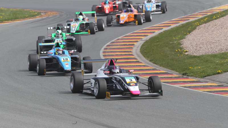 Nach 15 Runden ging die Jagd für fünfeinhalb Minuten wieder von vorne los. Luca Engstler war von der Strecke gesegelt, konnte sich aus dem Kies befreien, hatte sich das Fahrzeug aber beschädigt. Unterdessen war Moritz Müller-Crepon ebenfalls im Kiesbett gelandet. Er musste dort aber geborgen werden und somit kam das Safety Car zum vierten Mal zum Einsatz. Nach 17 Runden gab die Rennleitung das Rennen nochmals frei. In der ersten Kurve wurde der Führende Mick Schumacher von Mike David Ortmann überrumpelt. Damit hatte es einen Führungswechsel gegeben. Sophia Flörsch konnte wiederum einen Platz gut machen und nahm nun Rang sieben ein. Nach 19 Runden hatte Mike David Ortmann einen Doppelsieg nach Hause gefahren, gefolgt von Mick Schumacher und Joey Mawson. Sophia Flörsch beendet als beste Dame das Rennen auf Platz sieben.