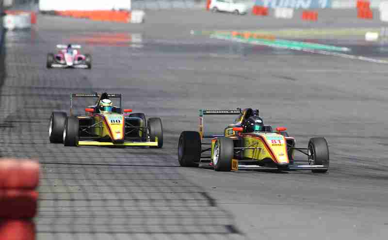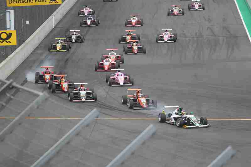Nicht mehr mit von der Partie waren: Fredrik Vesti, Oliver Caldwell, Niklas Krütten, Lucas Alecco Roy, Joey Alders, Tom Beckhäuser, Gianluca Petecof und Sebastian Estner. Das Rennen wurde dann später für acht Minuten noch einmal freigegeben. Charles Weerts konnte im nach hinein aus der Boxengasse starten. Der Re-Start erfolgte dann hinter dem Safety Car. Lirim Zendeli konnte seine Führungsposition behaupten und führte das Feld in die erste Kurve. Er konnte sich auch direkt ein wenig vom Feld absetzen.