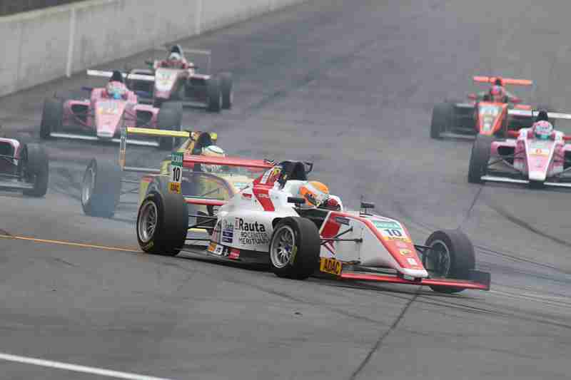 Am Sonntagmorgen machten sie sich dann noch einmal bereit um ihr drittes Rennen an diesem Wochenende hinter sich zu bringen. Die ersten acht aus dem zweiten Rennen tauschten ihre Plätze und somit stand Joey Alders auf der Pole, gefolgt von David Schumacher und Enzo Fittipaldi. Der Tabellenführer stand in der vierten Startreihe. Der Pole-Setter hatte nach der Einführungsrunde seine Pole verteidigt und konnte die Meute in die erste Kurve führen. Einer aus dem Mittelfeld hatte sein Fahrzeug nicht mehr unter Kontrolle und segelte übers Grüne und musste danach dem Feld hinterher eilen. Harte Kämpfe wurden bereits im Mittelfeld ausgetragen.