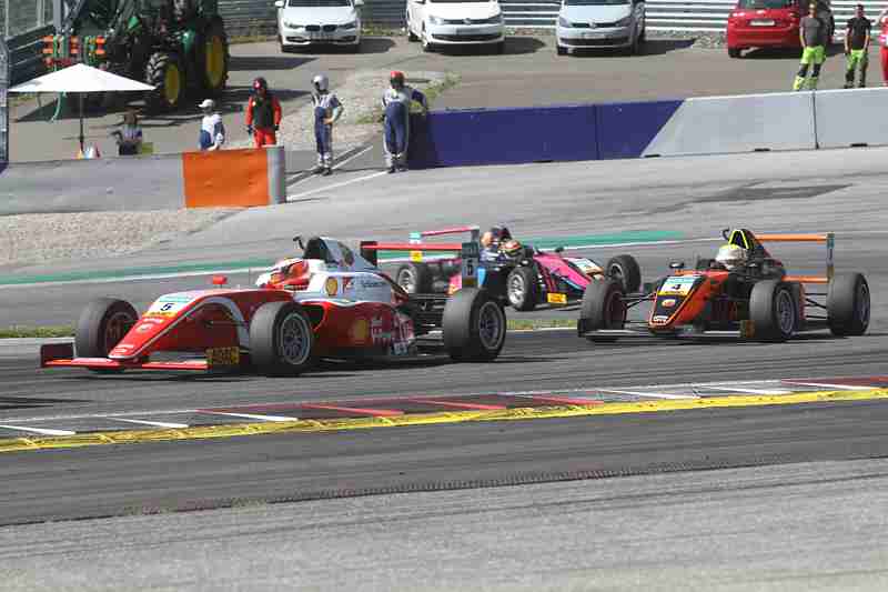 Nico Göhler hatte sich im Kiesbett eingegraben und somit musste nach sechs Runden das Safety Car zum Einsatz kommen, da der Havarist erst einmal geborgen werden musste. Der Re-Start erfolgte bei der nächsten Umrundung und Dennis Hauger konnte sich erneut etwas vom Feld absetzen. Um Platz zwei entstand rundenlang ein harter Kampf zwischen Alessandro Famularo und Theo Pourchaire. Etwas auf Abwegen war Oliver Rasmussen. Auf Platz vier hatte William Alatalo sechs Fahrzeuge im Schlepptau. Gianluca Petecof hatte eine enorme Aufholjagd hinter sich, denn er war von Platz 23 aus bis auf Rang neun nach vorne gefahren.