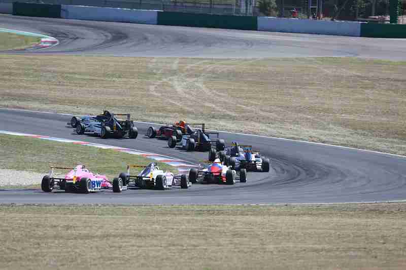 Rundenlang dauerte dieses Duell zwischen diesen beiden an. Auf Platz drei fahrend hatte Victor Bernier nach vorne und hinten genug Luft. Bei noch vierzehn Minuten zu fahrender Zeit öffnete der Himmel plötzlich die Schleusen. Die Rennleitung schickte nun das Safety Car heraus. Einige der Piloten nutzen dies um auf Regenreifen zu wechseln. Selbst mit Regenreifen drehte sich Oliver Bearman hinter dem Safety Car auf der Strecke. Bei noch vier Minuten zu fahrender Zeit wurde das Rennen mit der roten Flagge abgebrochen. Elias Seppänen holte sich damit den Sieg vor Victor Bernier und Kirill Smal.