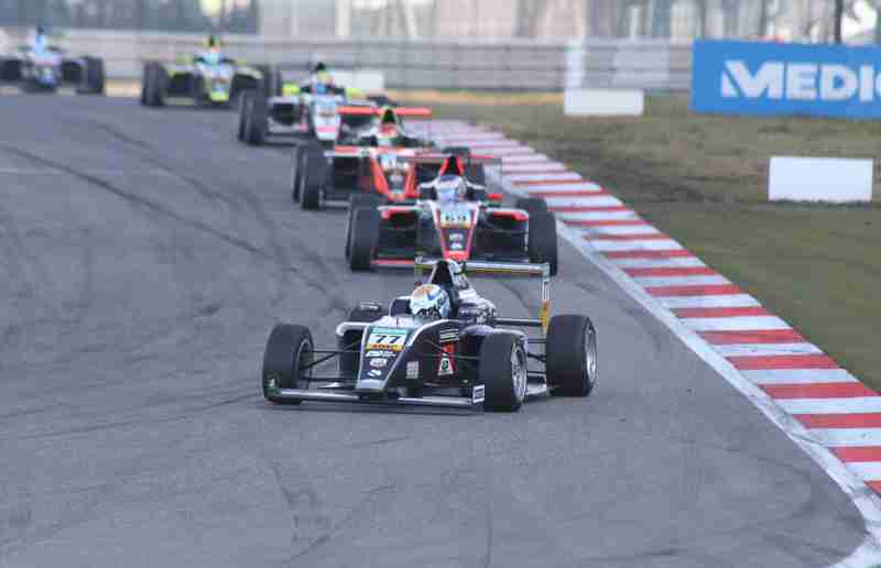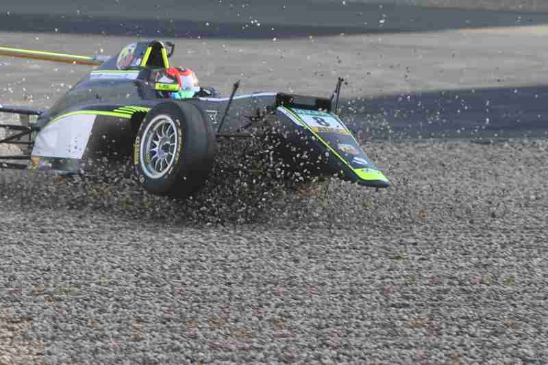 Durch diesen Vorfall war die Tabellenführung futsch. Diese hatte jetzt Tim Tramnitz, sollte er gewinnen mit zwei Punkten Vorsprung inne. Luke Browning hatte unterdessen einen Platz eingebüßt und war auf Rang fünf unterwegs. Die ersten drei versuchten sich nach vier gefahrenen Runden etwas vom übrigen Feld abzusetzen. Victor Bernier auf Rang vier hatte es mit Luke Browning zu tun bekommen. Dieser stand aber nach fünf Runden mit beschädigtem Fahrzeug im Kiesbett. Sofort schickte die Rennleitung das Safety Car heraus, um den Havaristen in aller Ruhe bergen zu können. Dies spielte nun Oliver Baerman in die Karten, denn er fand dadurch den Anschluss an das Feld. Das Rennen konnte dann nach acht Runden wieder aufgenommen werden. Der Re-Start ging zu Gunsten von Tim Tramnitz aus.