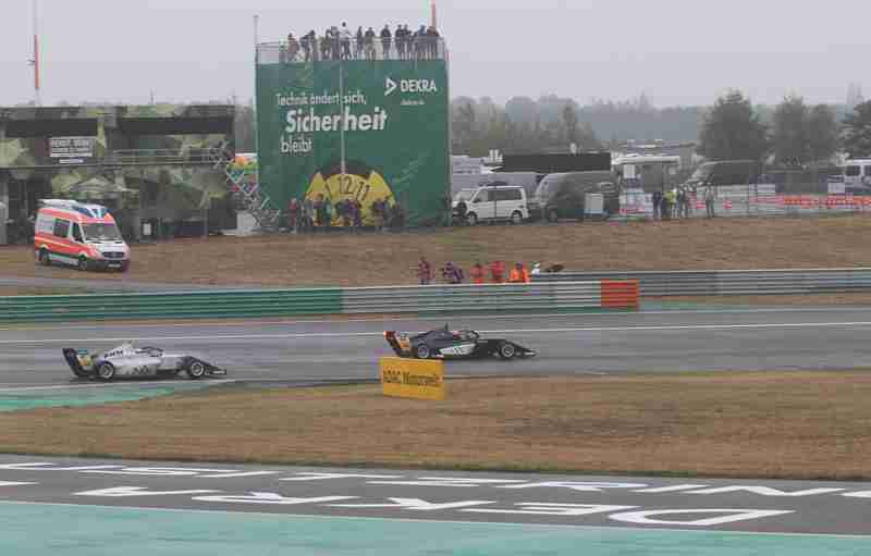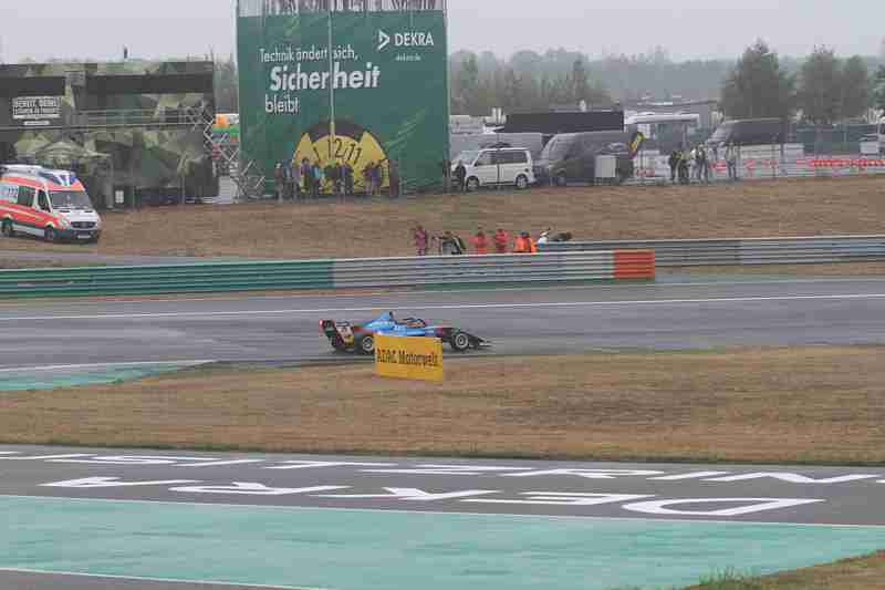 In der letzten Minute auf Platz sieben fahrend war Jonas Ried auf Abwegen unterwegs. Auch der Thailänder hatte mit der Strecke seine liebe Mühe. Er drehte sich hinaus. Nikita Bedrin gewann nach 17 Runden sein erstes Rennen in der ADAC Formel 4, gefolgt von Taylor Barnard und Rasmus Joutsimies. Letzterer war damit auch der beste Rookie im Feld. Zachary David und Ruiqi Liu überquerten die Ziellinie auf den Rängen sechs und zehn.