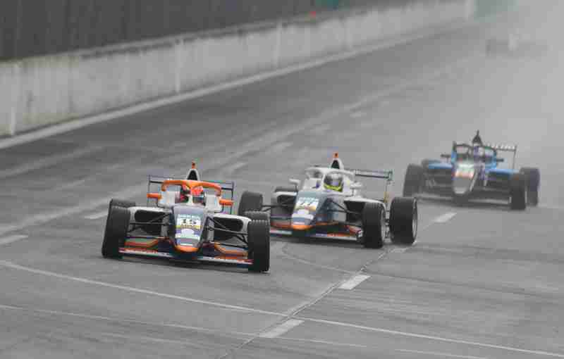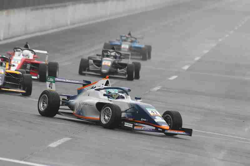 Taylor Barnard (PHM Racing): „Die Strecke war sehr nass, deshalb bin ich beim Start nicht ganz so gut weggekommen. Für mich waren diese Bedingungen komplett neu. Im weiteren Rennverlauf wollte ich den zweiten Platz sicher ins Ziel bringen und bin Nikita bewusst nicht gefolgt.“