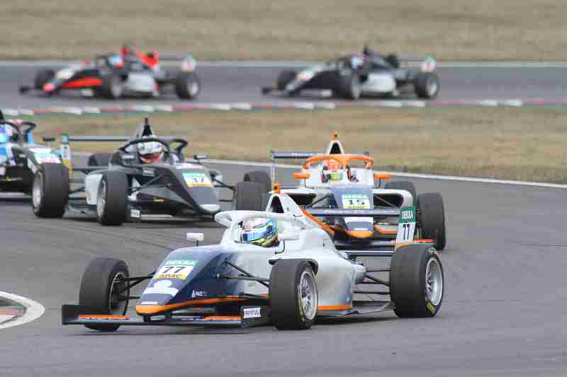 Der Brite an der Spitze hatte sich nach zwei Runden bereits mit 1,578 Sekunden auf und davon gemacht. Im Verlauf der vierten Runde musste sich Samir Ben gegenüber Michael Sauter geschlagen geben. Der Schweizer hatte sich damit auf Rang sieben gefahren. Rasmus Joutsimies auf Platz vier hatte Jonas Ried und Valentin Kluss im Schlepptau. Nach sechs Runden kam das Safety Car auf die Strecke, da Michael Sauter von der Strecke abgekommen, in die Leitplanken eingeschlagen und danach im Kies stecken geblieben war. Nachdem man ihn geborgen hatte konnte das Rennen nach acht Runden wieder frei gegeben werden. Taylor Barnard hatte genau den Punkt erwischt im richtigen Moment Gas zu geben und seine Führung damit zu behaupten.