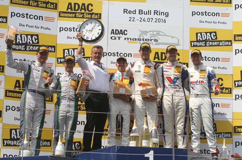Laurens Vanthoor (kfzteile24 APR Motorsport, Audi R8 LMS), Gesamtsieg: "Unser Team hat unser Auto hier am Red Bull Ring wirklich gut hinbekommen. Zu Beginn des Rennens konnte ich mich gemeinsam mit Daniel Keilwitz in der Corvette von den Verfolgern absetzen. An manchen Stellen war er schneller, an manchen Stellen ich. Normales Überholen war aber nicht möglich. Kurz vor den Boxenstopps habe ich versucht, mehr Druck auszuüben und dann ist ihm ein Fehler unterlaufen, den ich ausgenutzt habe. Erster Saisonsieg für unser Team, erster Sieg des neuen Audi, erster Sieg im ADAC GT Masters für mich ¬- ein rundum tolles Ergebnis."