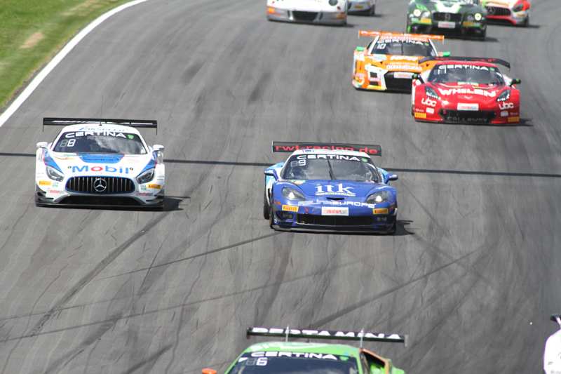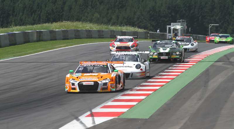 Als es dann am Samstagmittag bei einer Temperatur von 26 Grad in die Startaufstellung ging, waren die Pole-Setter wegen eines technischen Defekts nicht mehr mit von der Partie. Jesse Krohn/Antonio Felix da Costa, die von Rang drei aus ins Rennen gegangen wären, wurden im nach hinein strafversetzt und mussten das Rennen von hinten in Angriff nehmen. Damit hatten Fabian Hamprecht/Christer Jöns die Pole eingenommen, gefolgt von Jules Gounon/Daniel Keilwitz und David Jahn/Kevin Estre. Nach der Einführungsrunde funktionierte der fliegende Start ohne weiteres und die Pole-Setter konnten ihre Platzierung behaupten und führten das weit gefächerte Feld in die erste Kurve. Mit viel Disziplin ging es dort hindurch. Überall im Feld wurden bereits harte Positionskämpfe ausgetragen. David Jahn/Kevin Estre hatten sich unterdessen bereits auf Platz zwei geschoben. Nach der Remus-Kurve konnten sich die Porsche-Piloten an den Bentley-Fahrern vorbeidrängen und hatten damit die Führung übernommen.