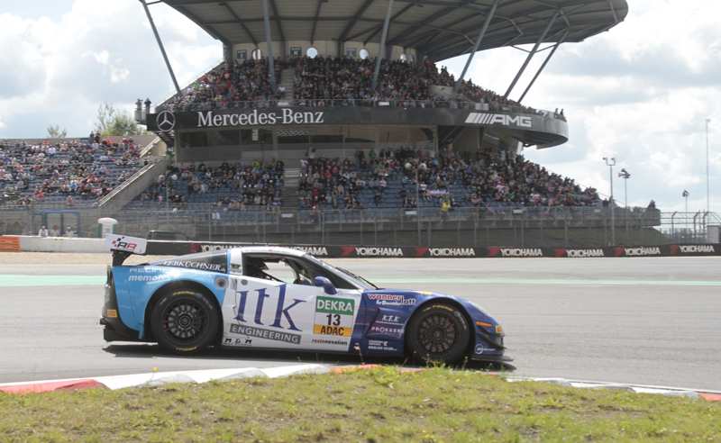 Auch das zehnte Rennen fand bei herlichstem Sommerwetter statt. Nach der Einführungsrunde funktionierte auch dieser fliegende Start ohne weiteres und die Pole-Setter konnten ihre Position behaupten und führten das weit gefächerte Feld in die erste Kurve. Dort gruben sich Markus Winkelhock/Nicolaj Möller Madsen ins Kiesbett ein, nachdem sie einen Schubser erhalten hatten. Wenig später drehten sich auch Sven Barth/Remo Lips. Nach der ersten Runde führten immer noch die Pole-Setter vor Martin Ragginger/Robert Renauer und Christopher Mies/Connor de Phillippi. Da die Havaristen geborgen werden mussten, schickte die Rennleitung das Safety Car heraus. Zu dieser Zeit waren die Tabellenführer mit Problemen in die Box gekommen und gaben dort das Rennen auf bevor es überhaupt angefangen hatte.