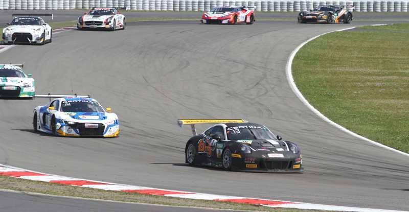 Im Verlauf der 32 Runde waren sich in der NGK Schikane Klaus Bachler/Marvin Dienst und Markus Winkelhock/Nicolaj Möller Madsen nicht ganz einig, mit der Folge das der Porsche sich drehte und der Audi dann auch quer auf der Fahrbahn stand. Letztere konnten noch in die Box kommen und dort das Rennen früher beenden als geplant. Da der Schütz-Porsche erst einmal in Ruhe geborgen werden musste, kam nun die vierte Safety Car Phase. Für die letzten fünfeinhalb Minuten wurde das Rennen dann wieder frei gegeben. Kevin Estre/David Jahn konnten sich auch direkt etwas vom Feld absetzen. Nun wurde überall im Feld wieder hart um jede Position gekämpft. Die Zweit und Drittplatzierten in der Meisterschaft hatten Ränge gut gemacht und lagen auf Platz 18 und 17. Zu dieser Zeit waren Louis Deletraz/Jesse Krohn in die Box gekommen und beendeten das Rennen früher als geplant. Zwischenzeitlich räuberten Jaap van Lagen/Norbert Siedler mächtig durchs Grüne. Nach 38 Runden wurden Kevin Estre/David Jahn als Sieger abgewunken, gefolgt von Martin Ragginger/Robert Renauer und Nicolaj Rogivue/Nicolai Sylvest. Die Tabellenführer beendeten das Rennen auf Platz fünf. Auf den Rängen 17 und 18 sahen Sebastian Asch/Luca Ludwig und Christopher Mies/Connor den Phillippi das Ziel.