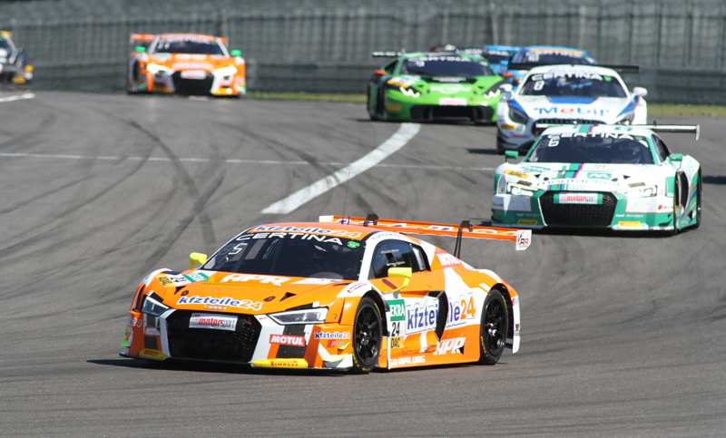 An der Spitze mussten die Audi-Piloten von kfzteile24 absolute Kampflinie fahren, denn immer wieder versuchten Connor de Phillippi/Christopher Mies sie in einen Fehler zu treiben. In der 30. Runde konnten Florian Stoll/Laurens Vanthoor Connor de Phillippi/Christopher Mies nicht mehr halten und mussten sie ziehen lassen. In den letzten elf Minuten standen Luca Ludwig/Sebastian Asch unter Beobachtung der Rennleitung. Nicolai Sylvest/Nicolaj Rogivue hatten sich verbremst und waren im Kiesbett gelandet. Da die Mercedes-Piloten nicht von allein aus dem Kies kamen musste das Safety Car herauskommen. Das Rennen konnte nach 34 Runden wieder frei gegeben werden und ging zu Gunsten der Führenden aus. Wenig später standen plötzlich Patrick Assenheimer/Dominik Schwager neben der Strecke. An der Spitze waren in den letzten zwei Minuten die Führenden wieder mit 1,497 wieder auf und davon gefahren.