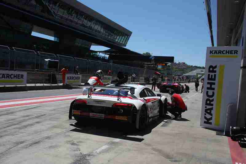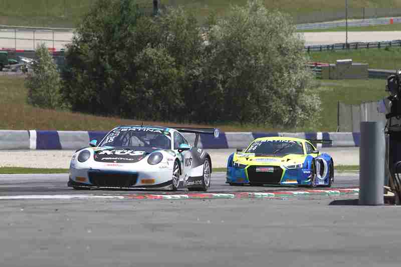 Die Startaufstellung für den Lauf am Samstagmittag mussten die Protagonisten am Samstagmorgen ausfahren. Die Strecke war zwischenzeitlich wieder abgetrocknet und es konnten auch schnellere Zeiten gegenüber gestern gefahren werden. Bei noch neun Minuten zu fahrender Zeit musste diese Sitzung mit der roten Flagge unterbrochen werden. Rolf Ineichen/Christian Engelhart waren von der Strecke abgekommen und heftig in die Leitplanken eingeschlagen. Zu dieser Zeit führten Lucas Auer/Sebastian Asch mit einer Zeit von 1:28,897 Minuten, gefolgt von Nicolai Sylvest/Nicolaj Rogivue und Jules Gounon/Daniel Keilwitz. Die Piloten kamen nun erst einmal in die Box gefahren.