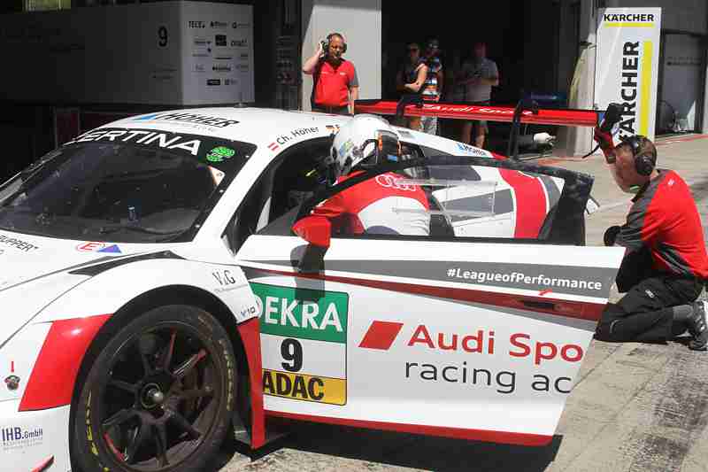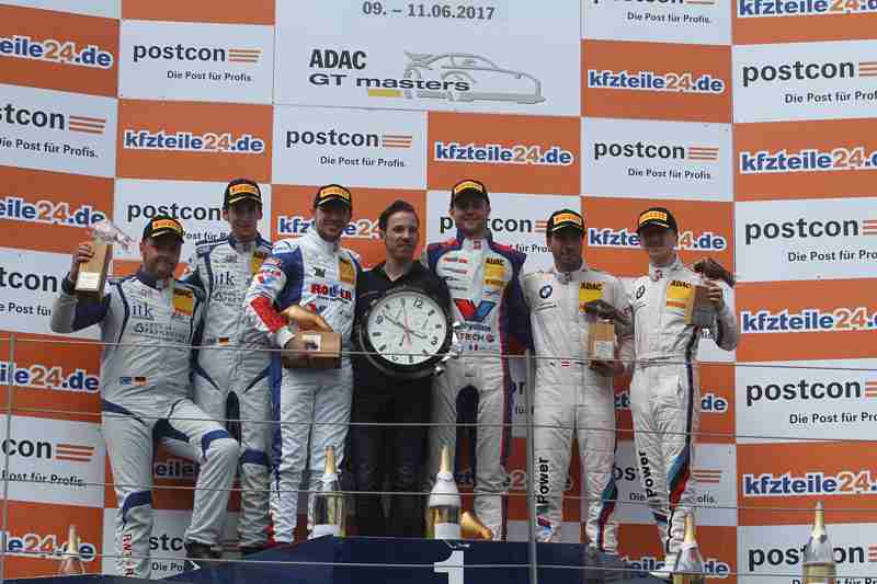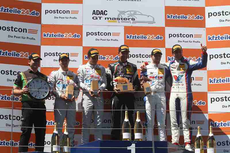 Eine Durchfahrtstrafe hatten unterdessen Marc Busch/Dennis Busch und Christopher Haase/Jeffrey Schmidt erhalten. Sie lagen auf den Rängen 20 und fünf. Während der Safety-Car-Phase traten die Audi-Piloten dann ihre Strafe an. Das Rennen wurde nach 38 Runden beendet und Daniel Keilwitz/Jules Gounon überquerten die Ziellinie als Sieger, gefolgt von Maximilian Hackländer/Sven Barth und Philipp Eng/Ricky Collard. Sebastian Asch/Lucas Auer und Maximilian Götz/Patrick Assenheimer beendeten das Rennen auf den Rängen vier und sechs. Als beste Dame sah Rahel Frey mit ihrem Partner Philip Geipel das Ziel auf Platz zehn. Die Tabellenführer und Ezequiel Perez Companc/Mirko Bortolotti wurden auf den Rängen zwölf und 21 gewertet.