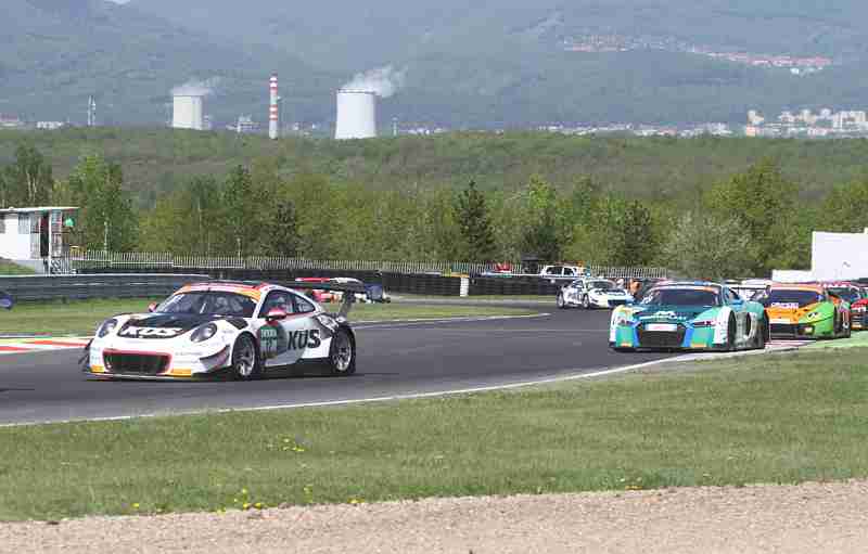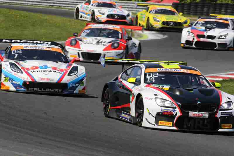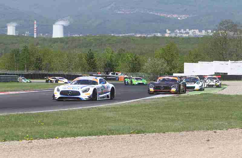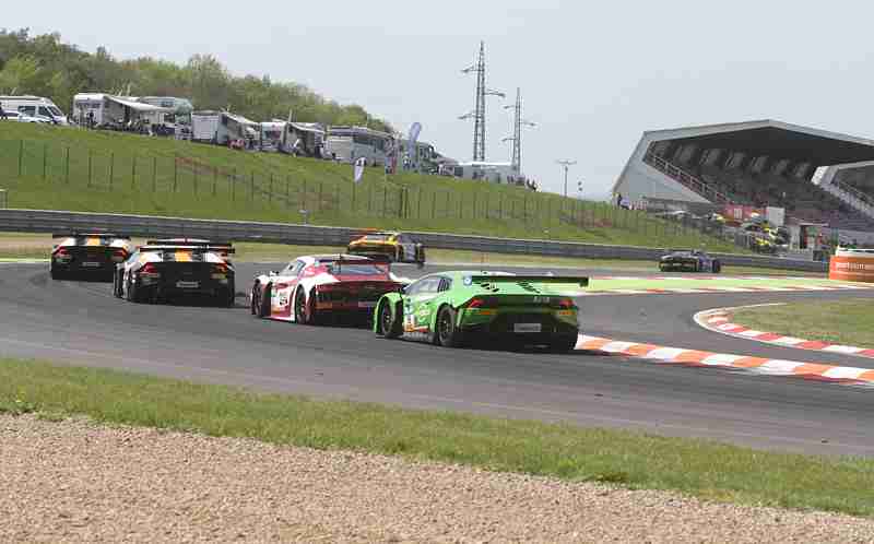 Das dritte Rennen in diesem Jahr fand am Samstagmittag bei strahlend blauem Himmel und sommerlichen Temperaturen statt. Nach der Einführungsrunde funktionierte der fliegende Start ohne weiteres und die Pole-Setter konnten ihre Position behaupten und führten das Feld an. Zwei aus dem mittleren Feld mussten bereits den Notausgang nehmen. Wenig später drehte sich einer aus dem Mittelfeld und es kam dann zu einer Kettenreaktion in denen mehrere Fahrzeuge verwickelt waren. Florian Spengler/Dries Vanthoor standen im Kies und Dominik Schwager/Luca Ludwig auf der Wiese. Christopher Dreyspring/Giorgio Maggi fuhren mit einem schleifenden rechten Hinterrad weiter und versuchten zur Box zu gelangen.
