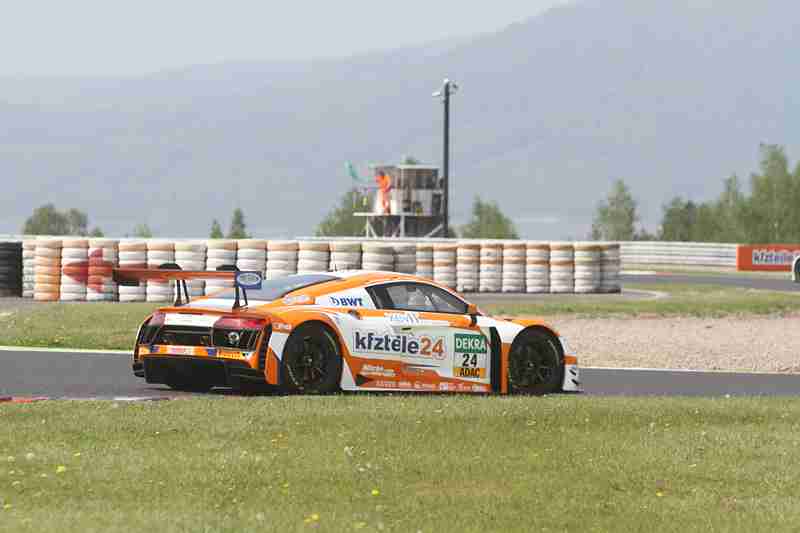 Sofort kam das Safety Car heraus. Zu dieser Zeit führten weiterhin Jeffrey Schmidt/Stefan Mücke vor Christopher Zöchling/Jens Klingmann und Marvin Kirchhöfer/Daniel Keilwitz. Markus Pommer/Maximilian Götz hatten zwei Plätze eingebüst. Patrick Assenheimer/Clemens Schmid hatten zu dieser Zeit die Box aufgesucht. Nach fünf Runden erfolgte dann der Re-Start. Die Audi-Piloten konnten ihre Führung behaupten. Die ersten beiden hatten sich mit über 1,5 Sekunden vom übrigen Feld abgesetzt. Im gesamten Feld wurden harte aber faire Zweikämpfe ausgetragen.