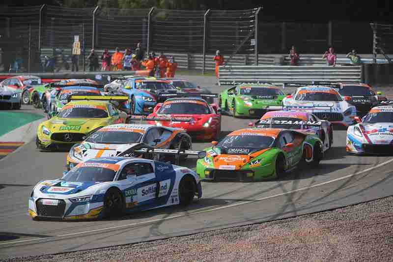 Porsche-Pilot Klaus Bachler verteidigte seine Führung beim sonntägigen Start. Dahinter kollidierten in der zweiten Kurve mehrere Fahrzeuge - darunter auch der Mercedes-AMG der bisherigen Tabellenführer Markus Pommer und Maximilian Götz. Deswegen wurde das Rennen mit der roten Flagge zunächst unterbrochen. Nach dem anschließenden Re-Start behauptete Klaus Bachler vor dem Audi von Kelvin der Linde und dem Mercedes-AMG von Indy Dontje bis zum Fahrerwechsel seine Spitzenposition. Eine Safety-Car-Phase zu Beginn des Boxenstopp-Fensters zur Bergung des BMW M6 GT3 von Jens Klingmann wirbelte das Feld durcheinander.