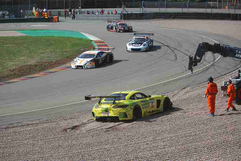 Keine Punkte gab es im elften Saisonlauf des ADAC GT Masters für die Top-Platzierten der Gesamtwertung: Die Tabellenführer Markus Pommer und Maximilian Götz schieden bereits in der zweiten Runde nach einer unverschuldeten Kollision mit dem Audi von Lokalmatador Philip Geipel und der Corvette des Tabellendritten Marvin Kirchhöfer aus. Marvin Kirchhöfer musste sein Fahrzeug schließlich nach sieben Runden wegen Folgeschäden abstellen. Ebenfalls nicht ins Ziel kamen wegen der Auswirkungen einer Kollision die Tabellenzweiten Robert Renauer und Mathieu Jaminet. Durch diese Nuller bleiben Markus Pommer und Maximilian Götz unverändert an der Tabellenspitze.